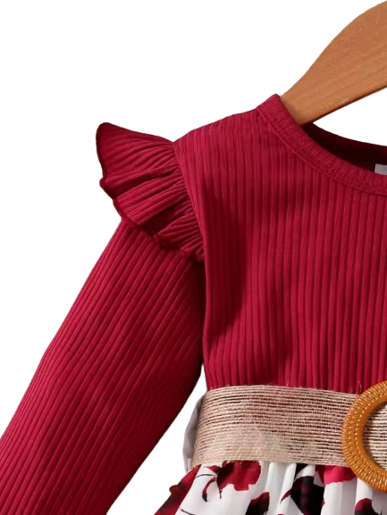 The Kiara - Baby Girl Red Long Sleeved Flower Skirt Dress
