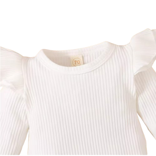 Your little girl will be the cutest in the room with The Mackenzie outfit! Made of soft and comfortable ribbed material, the fly sleeves, round neck bodysuit pairs perfectly with the stylish leopard print suspender skirt and bow headband. Give her the gift of comfort and style with this charming set.