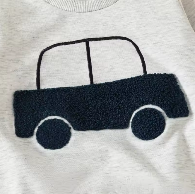 Elevate your little one's style with The Paxton! This set features a charming car embroidery on a cozy long sleeve pullover sweatshirt, perfectly paired with elastic waist pants for comfort. Take on any adventure with this adorable and practical outfit.