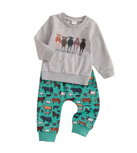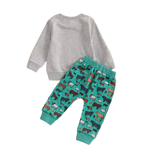 Dress your little one in countryside charm with The Reid outfit set. This adorable ensemble features a cozy long sleeve sweatshirt paired with playful animal print pants, perfect for fall adventures. The round neck design ensures easy dressing while the farm-inspired style brings seasonal warmth to your baby boy's wardrobe. An essential combination of comfort and style for your little explorer.